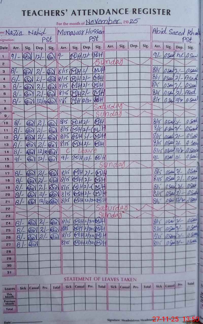 | 33**** | Na**** As**** | Regular | 0 | 0 | 12 | 0 | 0 | 0 | 0 | 0 | 0 | Absent (Un-Authorized) | |