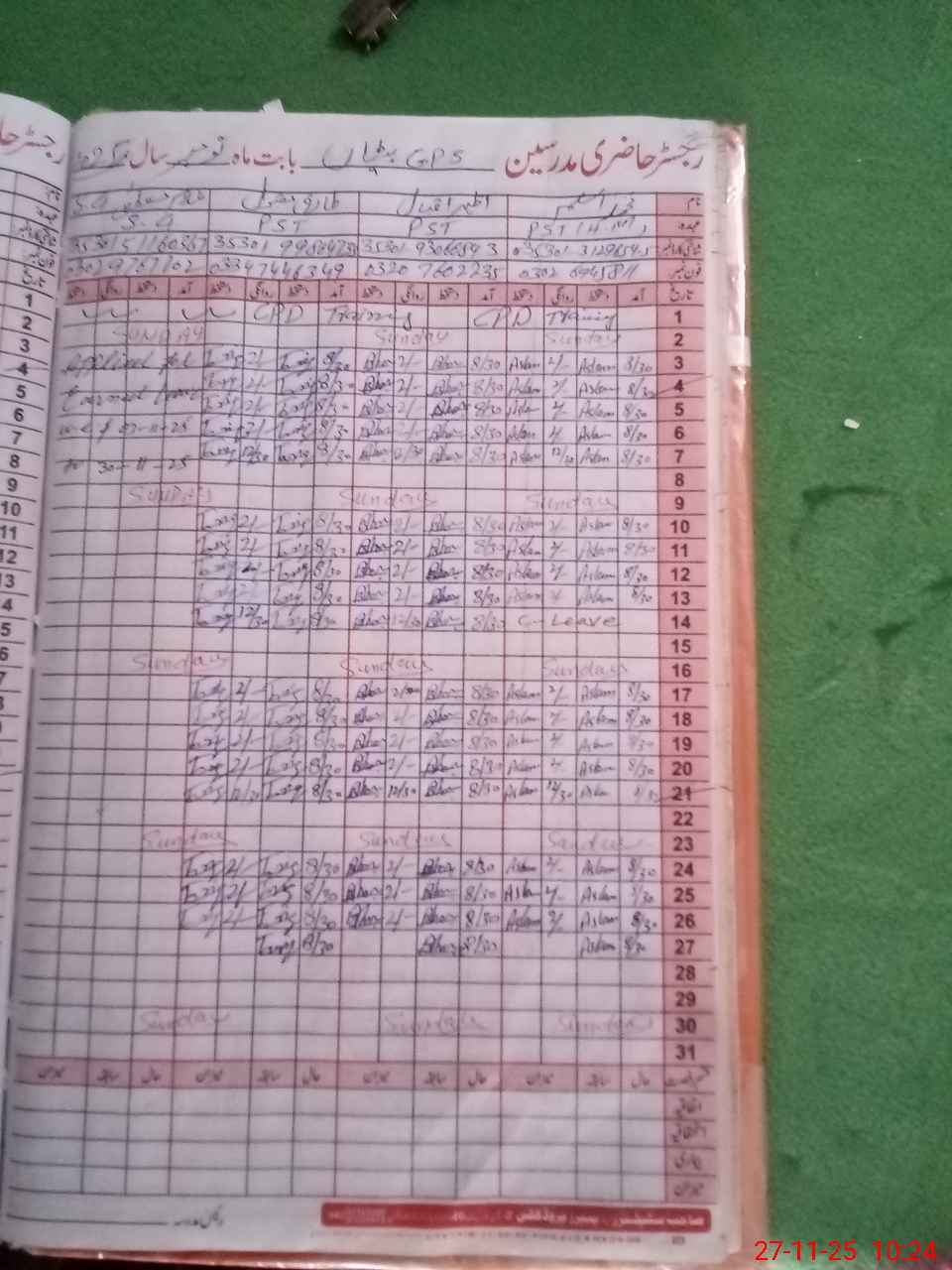 | CNIC | Full Name | Designation | R/C | Absence During Last Calender Month |