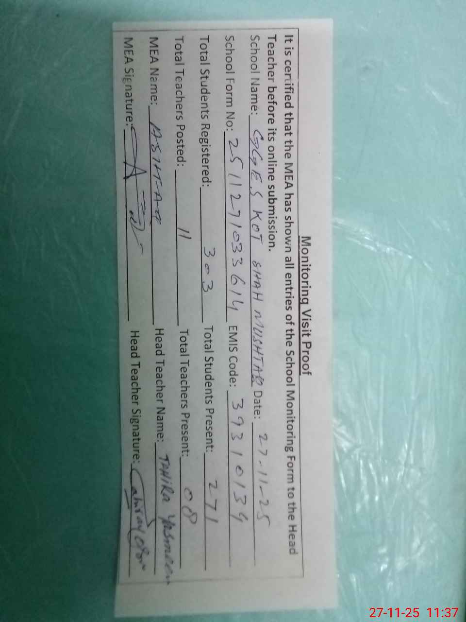 | EMIS Code: 39310134 | Name of School: GGES KOT SHAH MUSHTAQ | |||