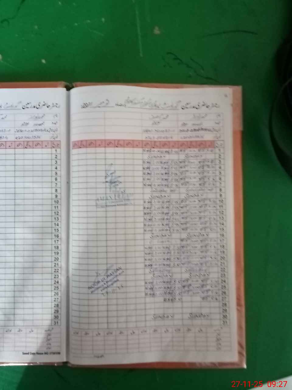 | CNIC | Full Name | Designation | R/C | Absence During Last Calender Month |