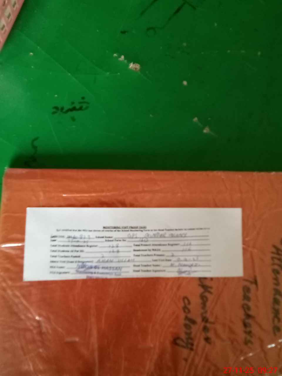 | Attendance Register | Head Teacher | MEA with School | Visit Proof |