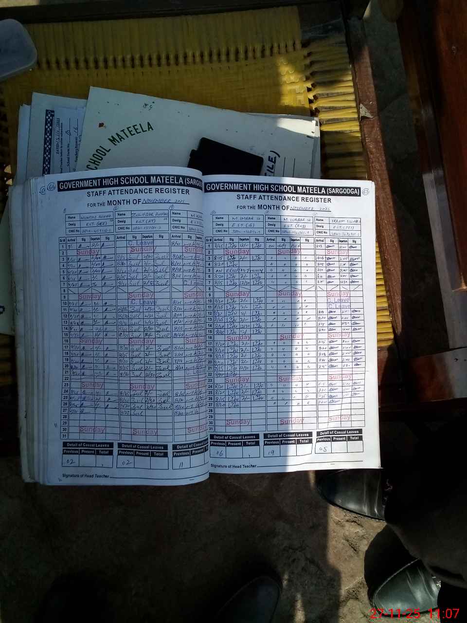 | CNIC | Full Name | Designation | R/C | Absence During Last Calender Month |
