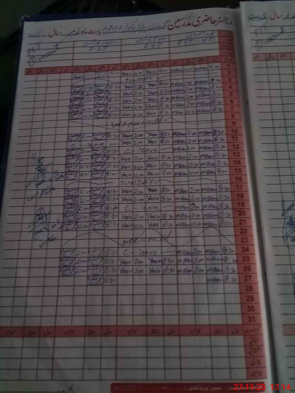 | 33**** | Gh**** Ya**** | PST | Regular | 0 | 0 | 0 | 0 | 0 | 0 | 0 | 0 | 0 | Absent (Un-Authorized) |