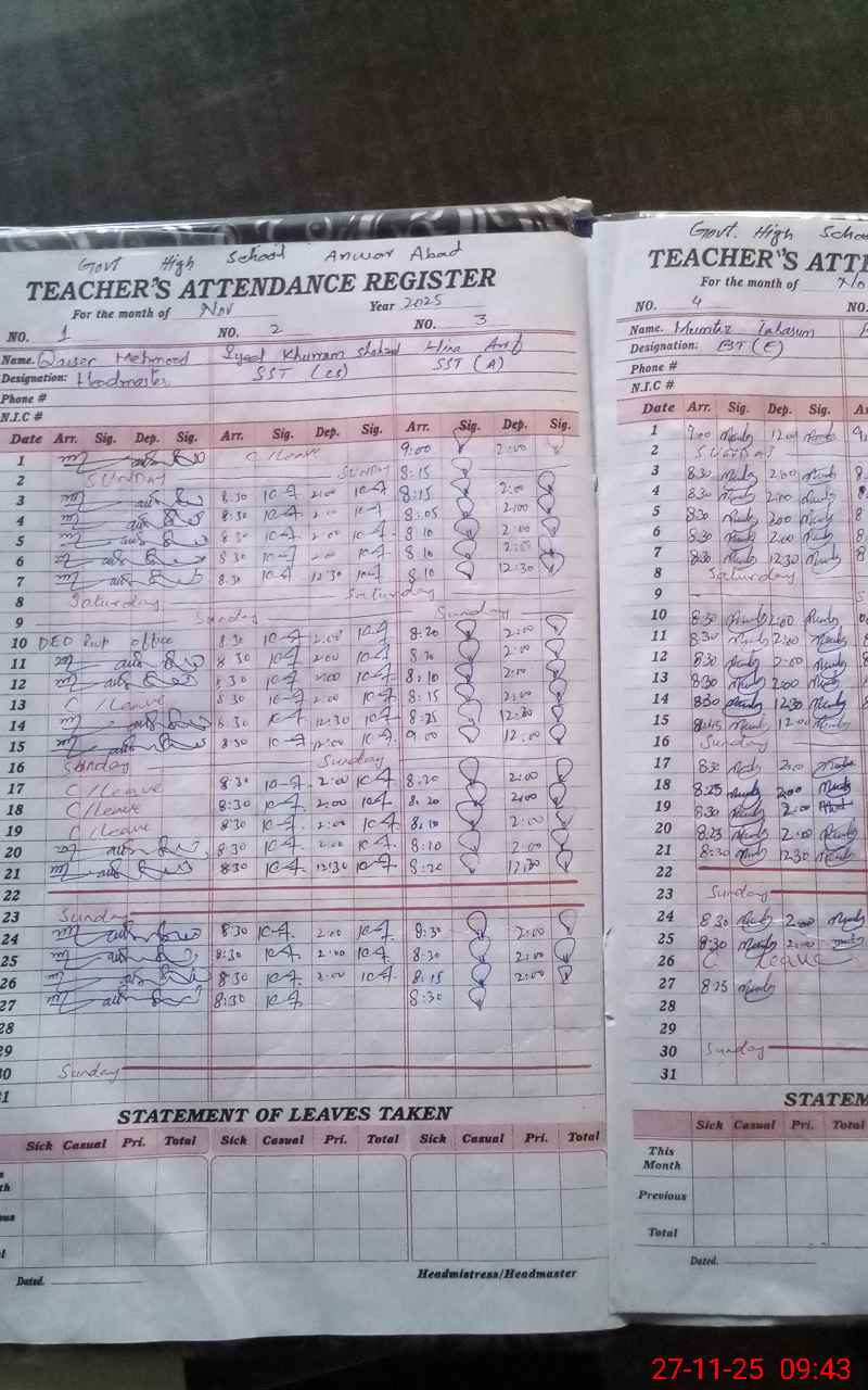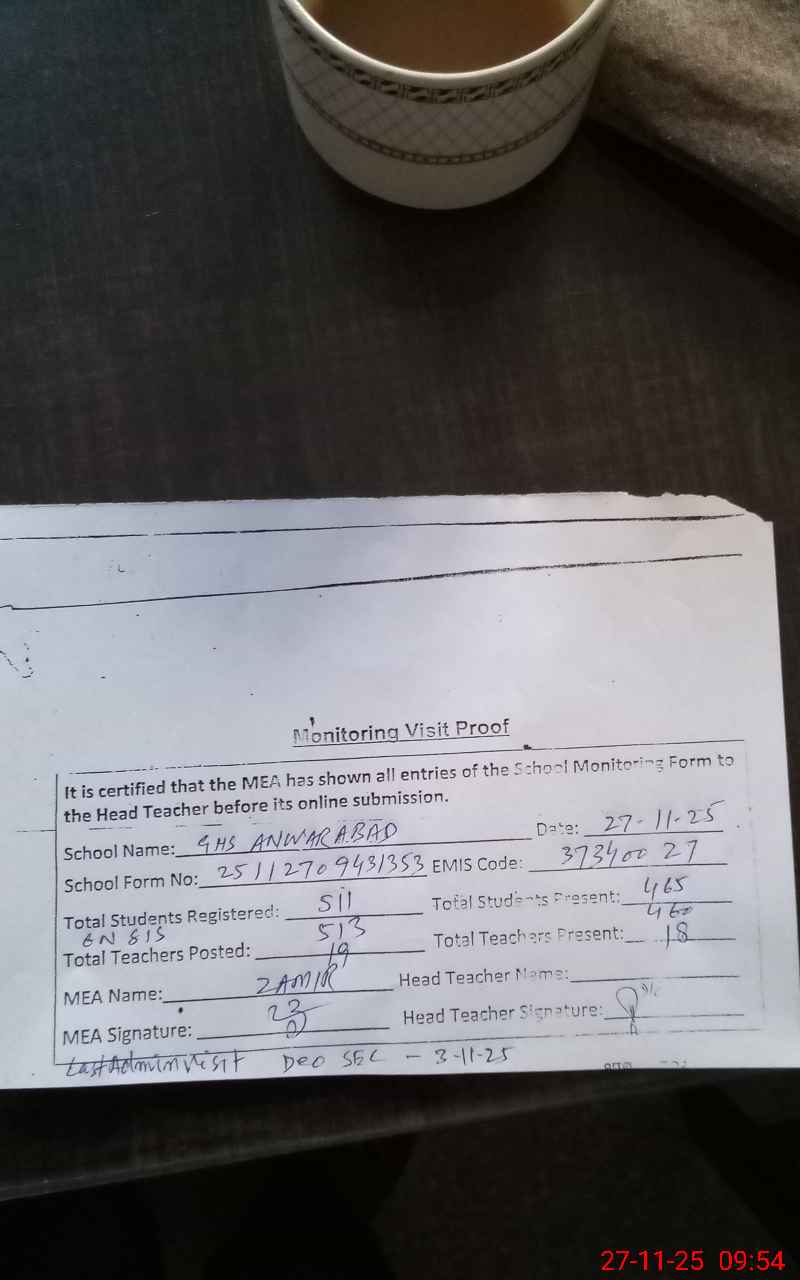 | EMIS Code: 37340027 | Name of School: GHS ANWAR ABAD | |||