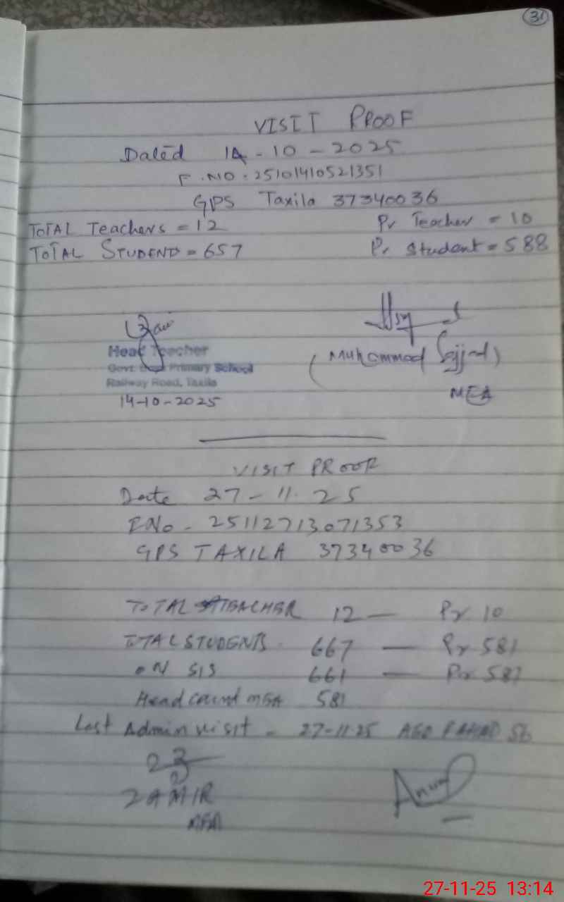 | EMIS Code: 37340036 | Name of School: GPS TAXILA | |||
