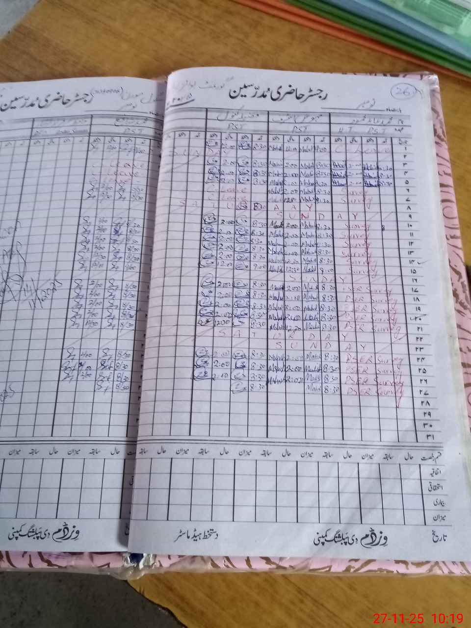 | CNIC | Full Name | Designation | R/C | Absence During Last Calender Month |