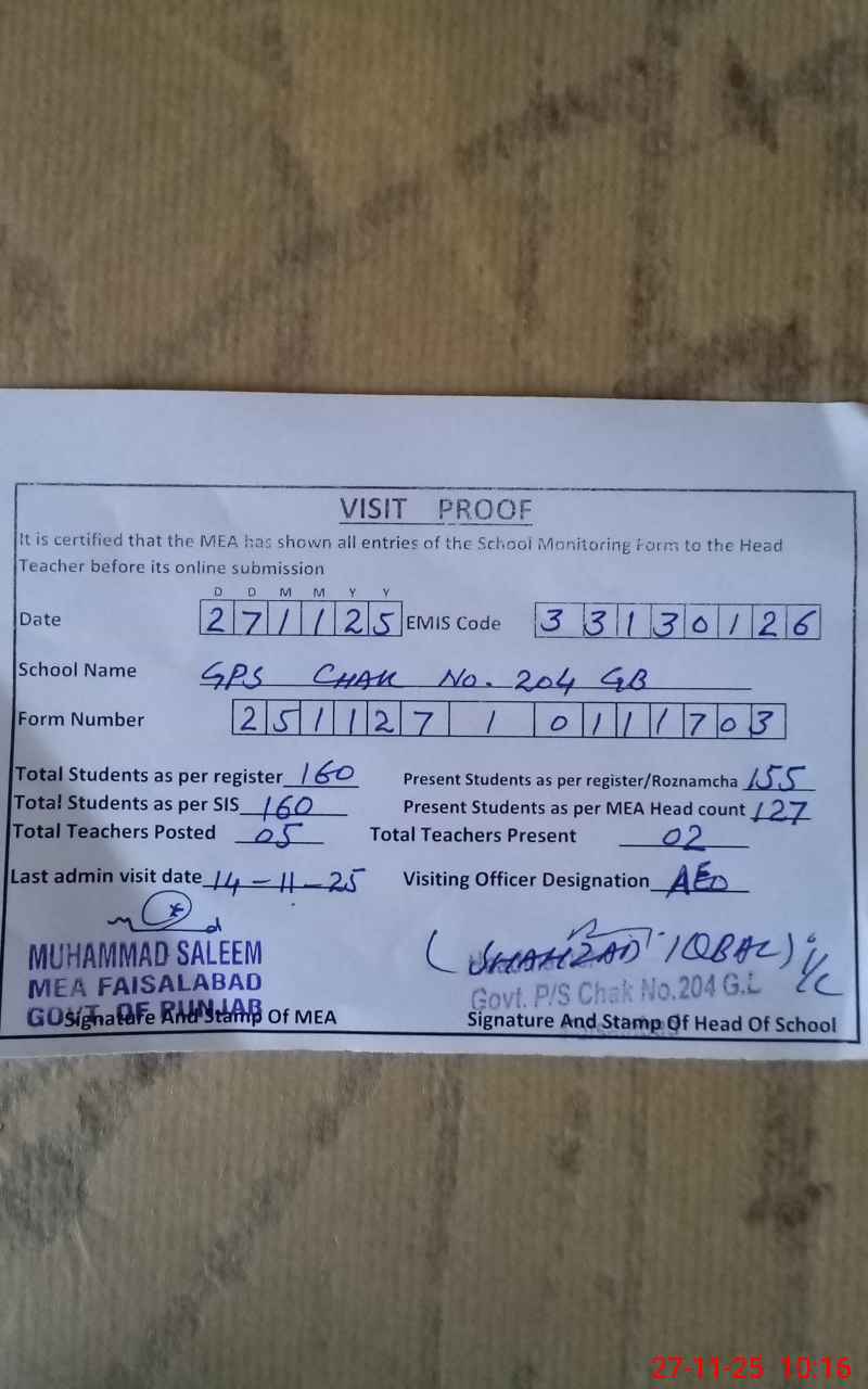 | EMIS Code: 33130126 | Name of School: GPS 204 GB | |||