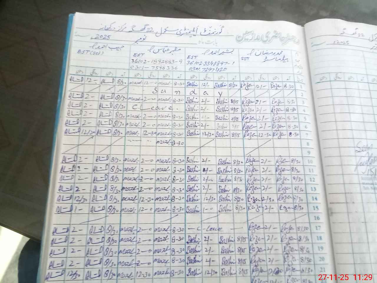 | Name: Mu**** Ra**** Designation: (School Headmaster's/Headmistress's) SST (G) Phone/Cell Number: 03**** |