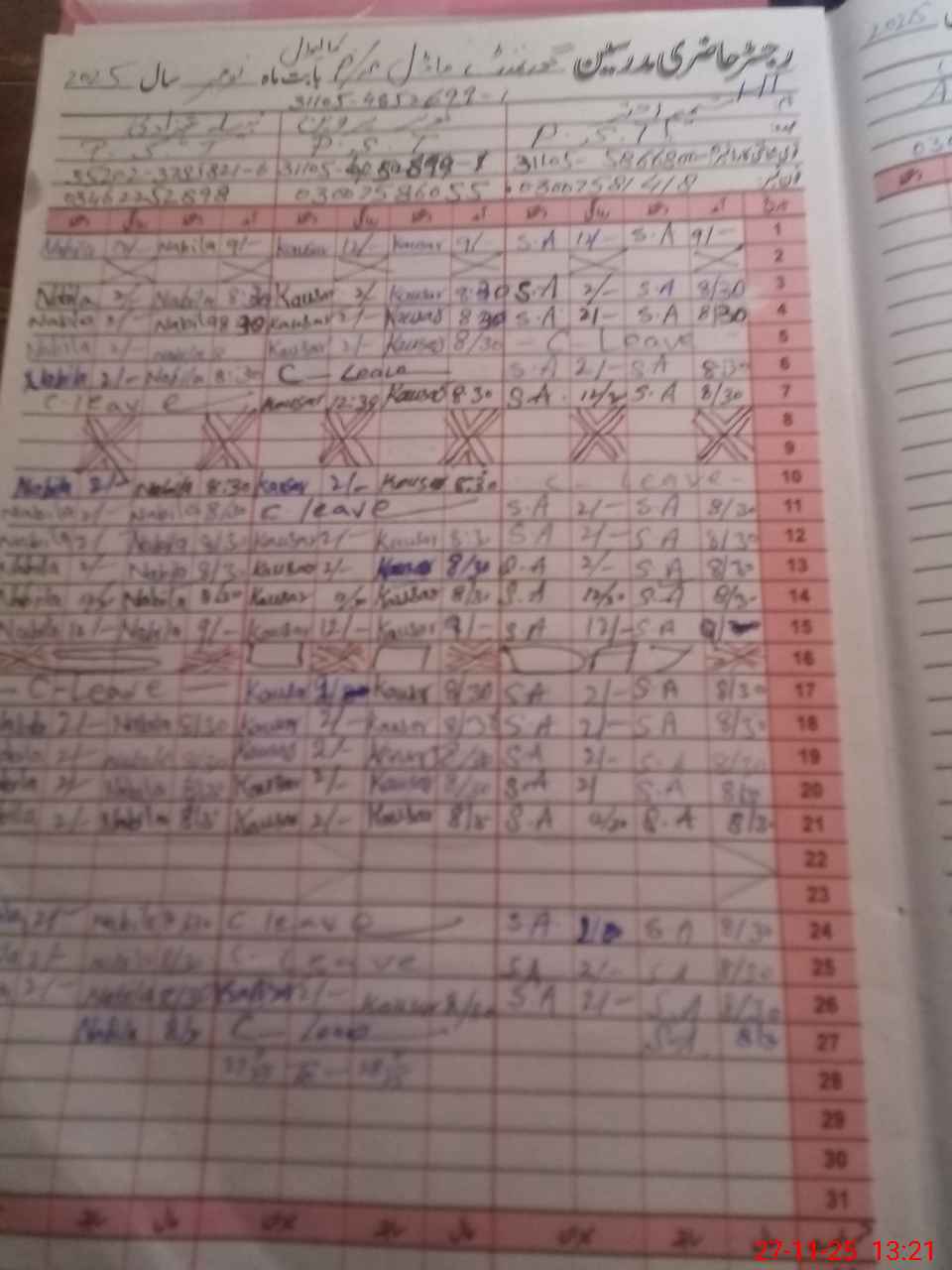 | CNIC | Full Name | Designation | R/C | Absence During Last Calender Month |