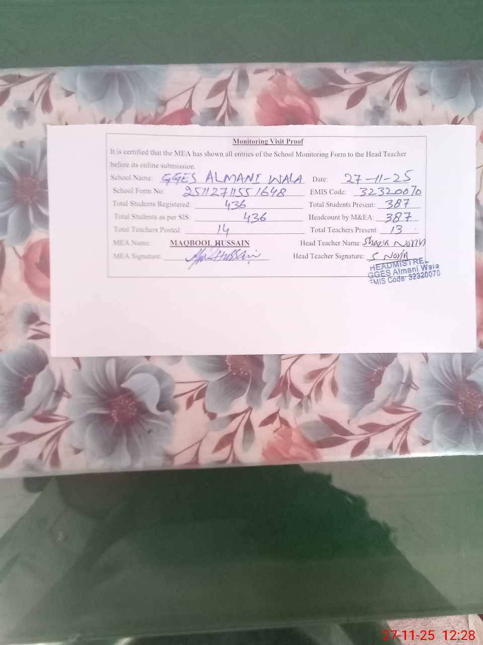 | EMIS Code: 32320070 | Name of School: GGES ALMANI WALA | |||