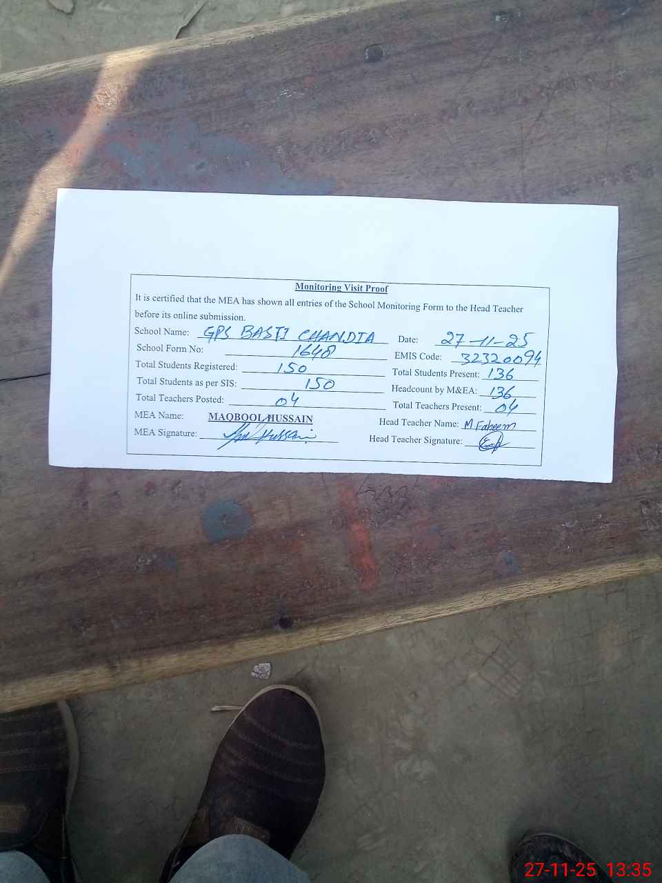 | EMIS Code: 32320094 | Name of School: GPS BASTI CHANDIA | |||