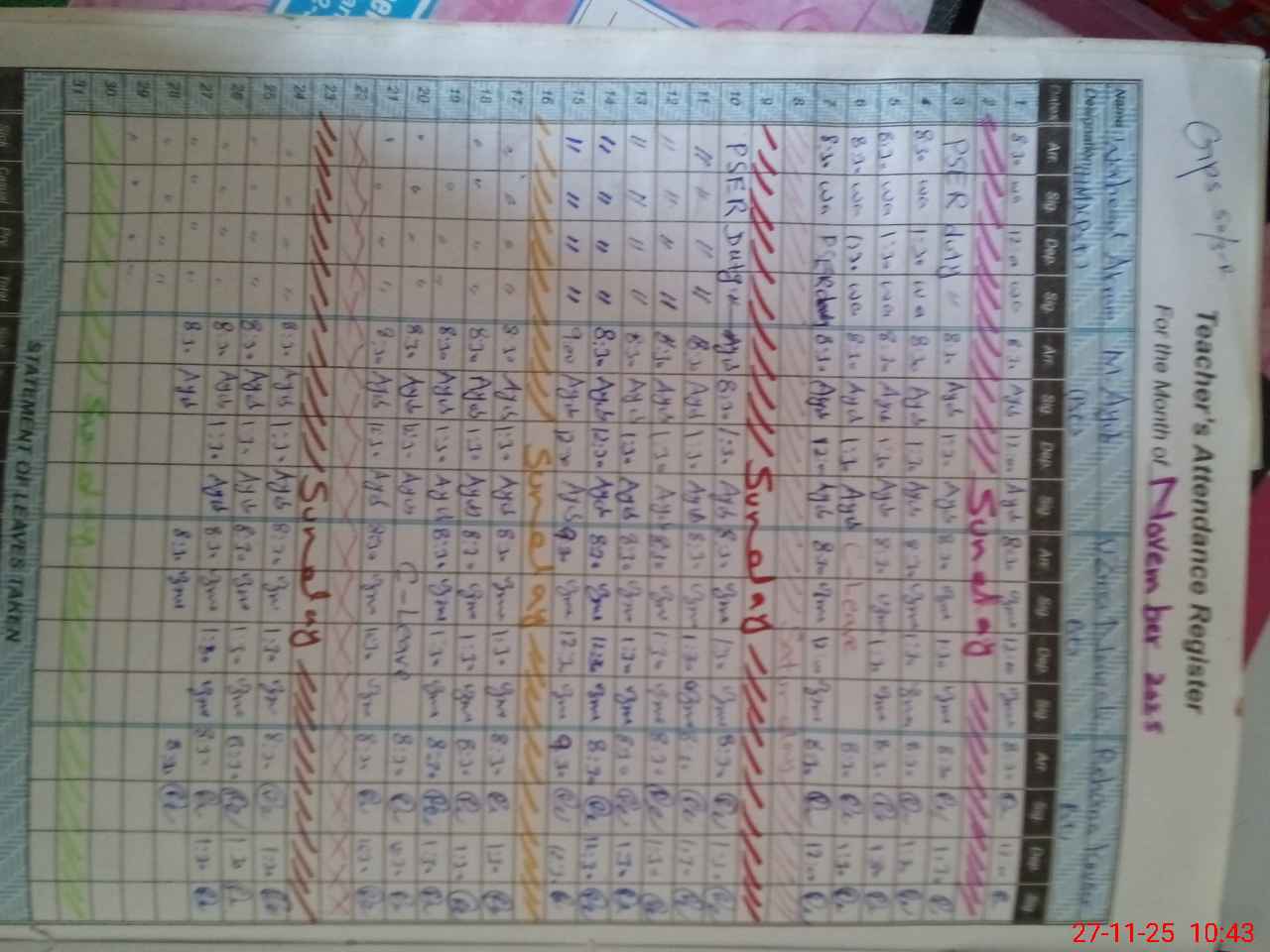 | CNIC | Full Name | Designation | R/C | Absence During Last Calender Month |