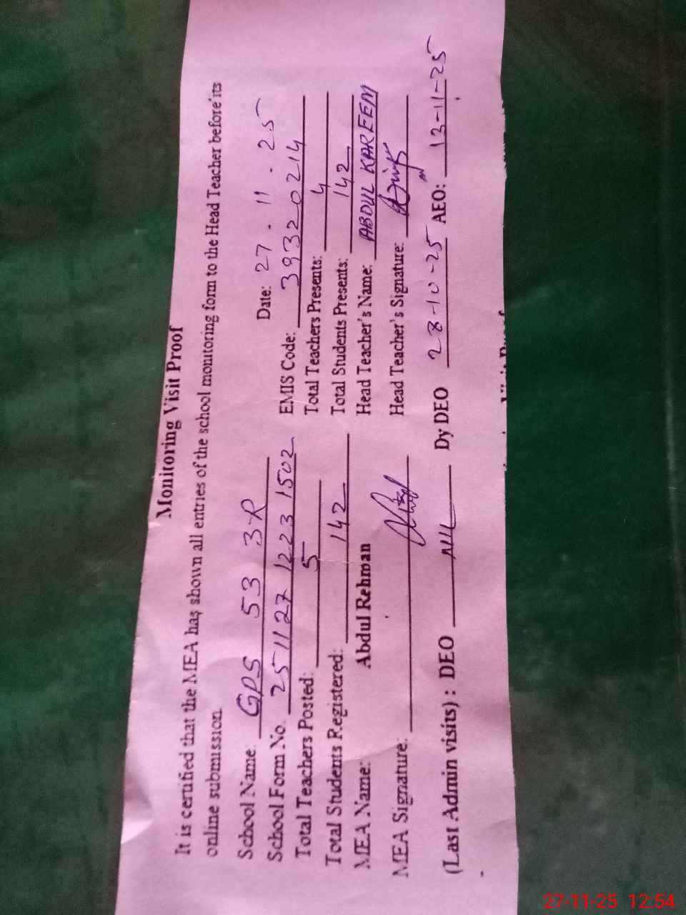 | EMIS Code: 39320214 | Name of School: GPS CHAK 53/3-R | |||