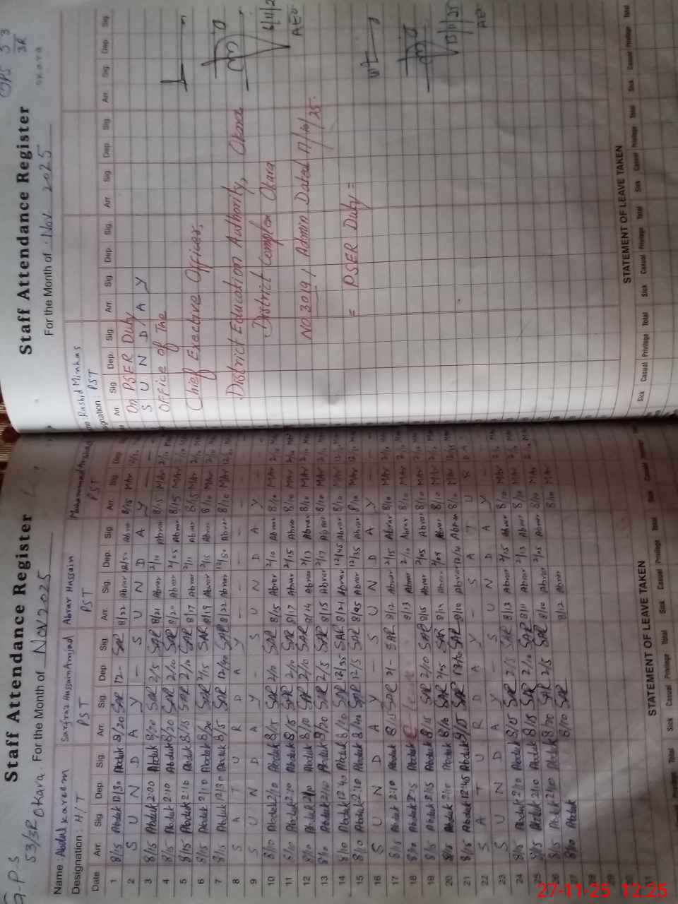 | Leave | Duty | Absent | Maternity | Medical | Ex- Pak |