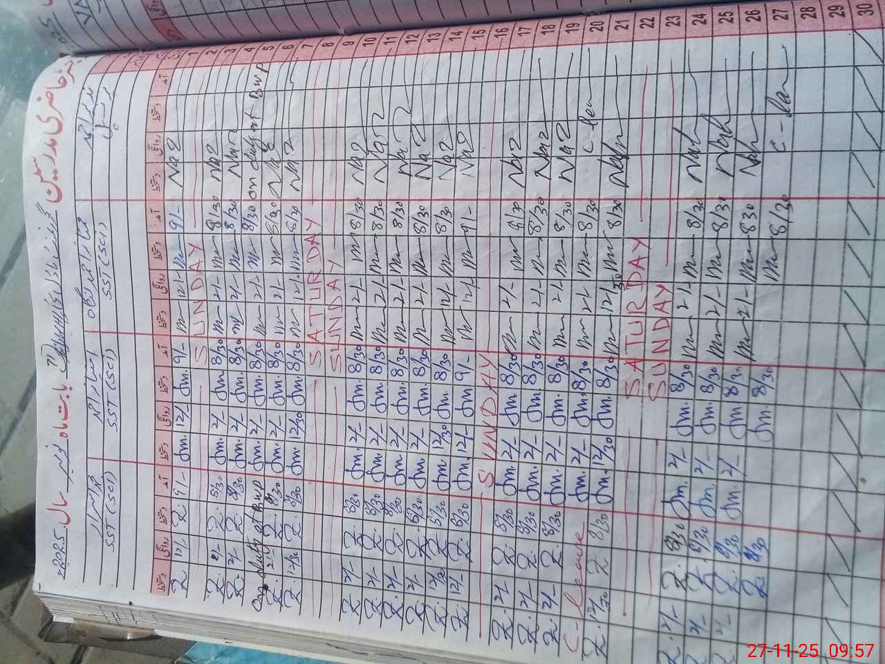 | CNIC | Full Name | Designation | R/C | Absence During Last Calender Month |