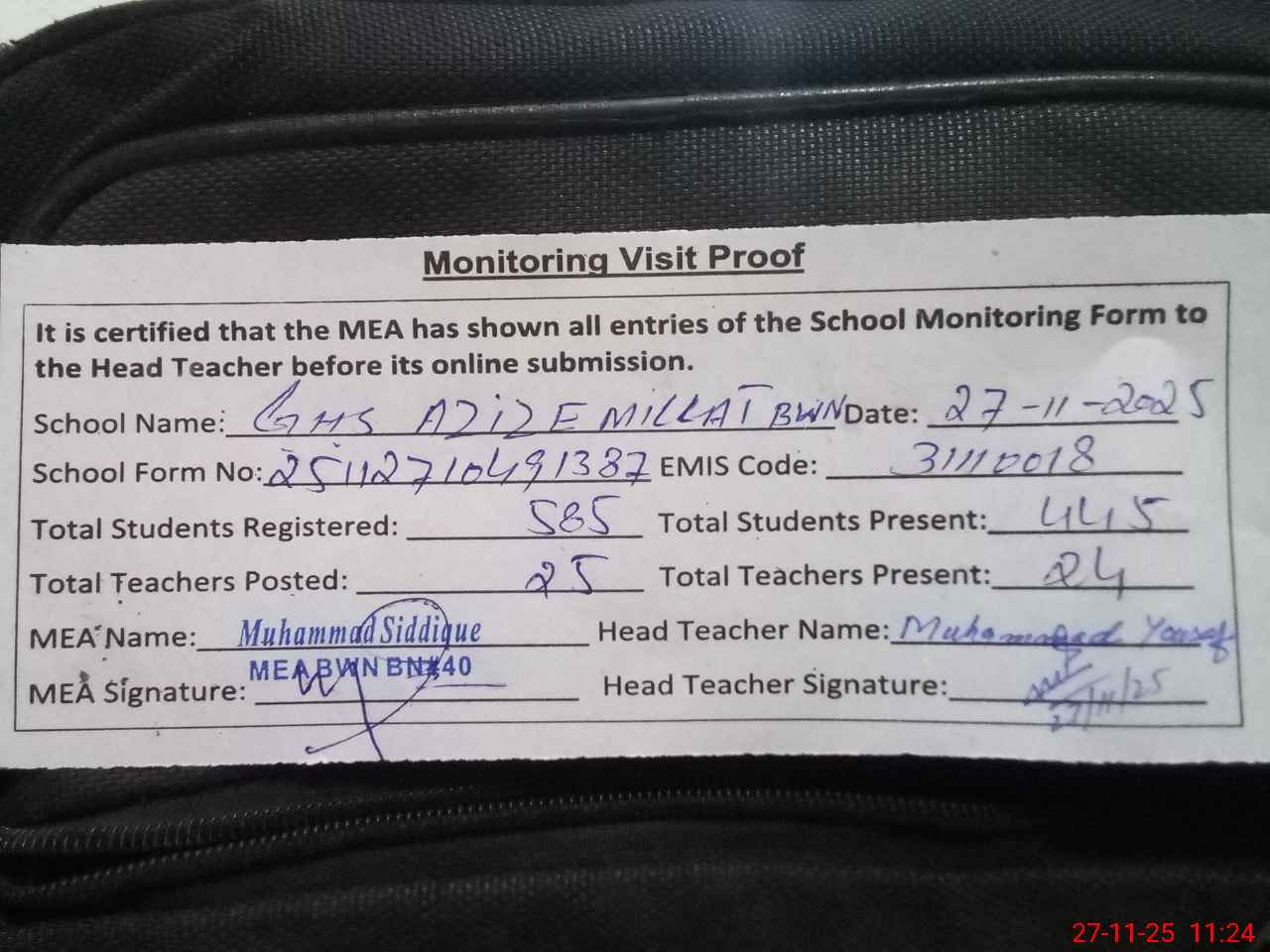 | EMIS Code: 31110018 | Name of School: GHS AZIZ E MILLAT BWN | |||