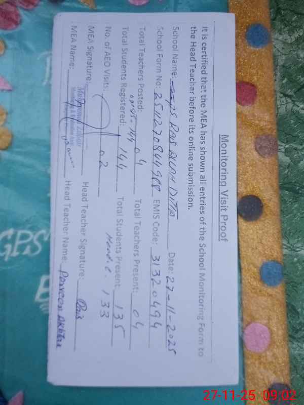 | EMIS Code: 31320494 | Name of School: GGPS RAIS ALLAH DITTA | |||
