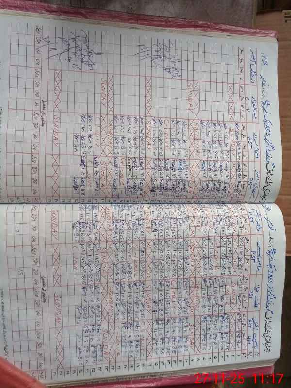 | CNIC | Full Name | Designation | R/C | Absence During Last Calender Month |