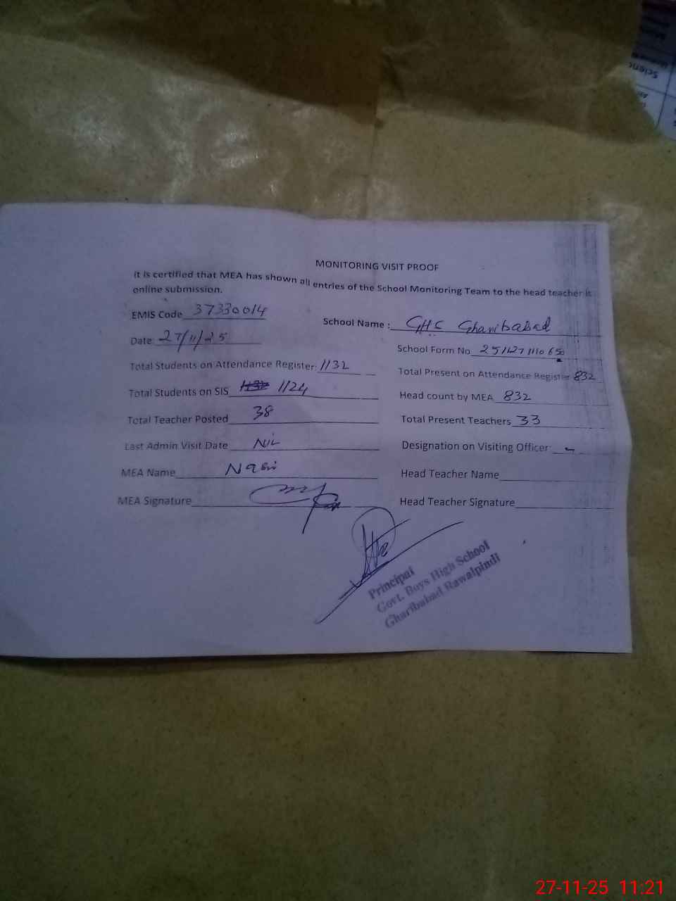 | EMIS Code: 37330014 | Name of School: GHS GHARIB ABAD | |||