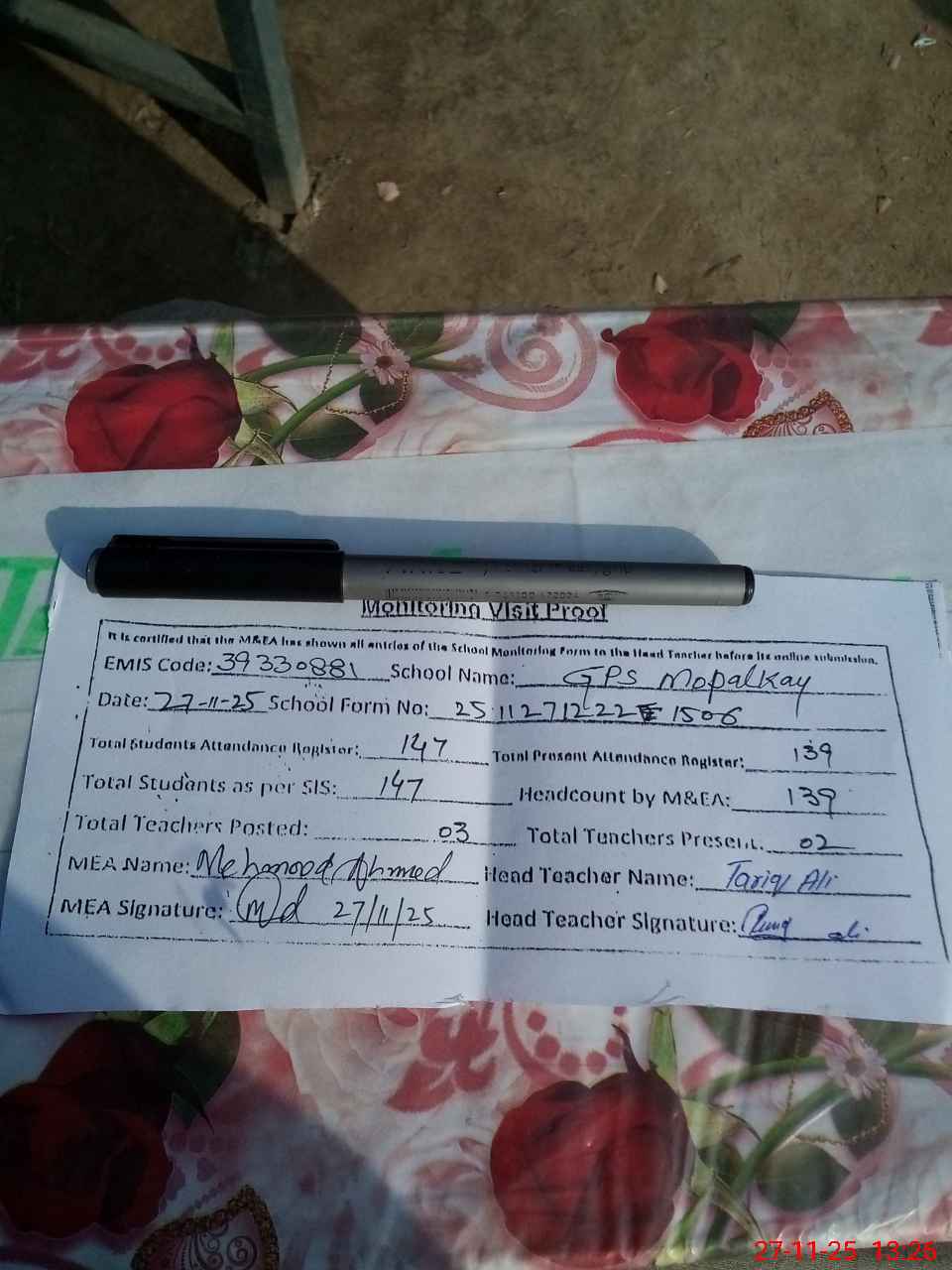 | EMIS Code: 39330881 | Name of School: GPS MOPAL KEY | |||