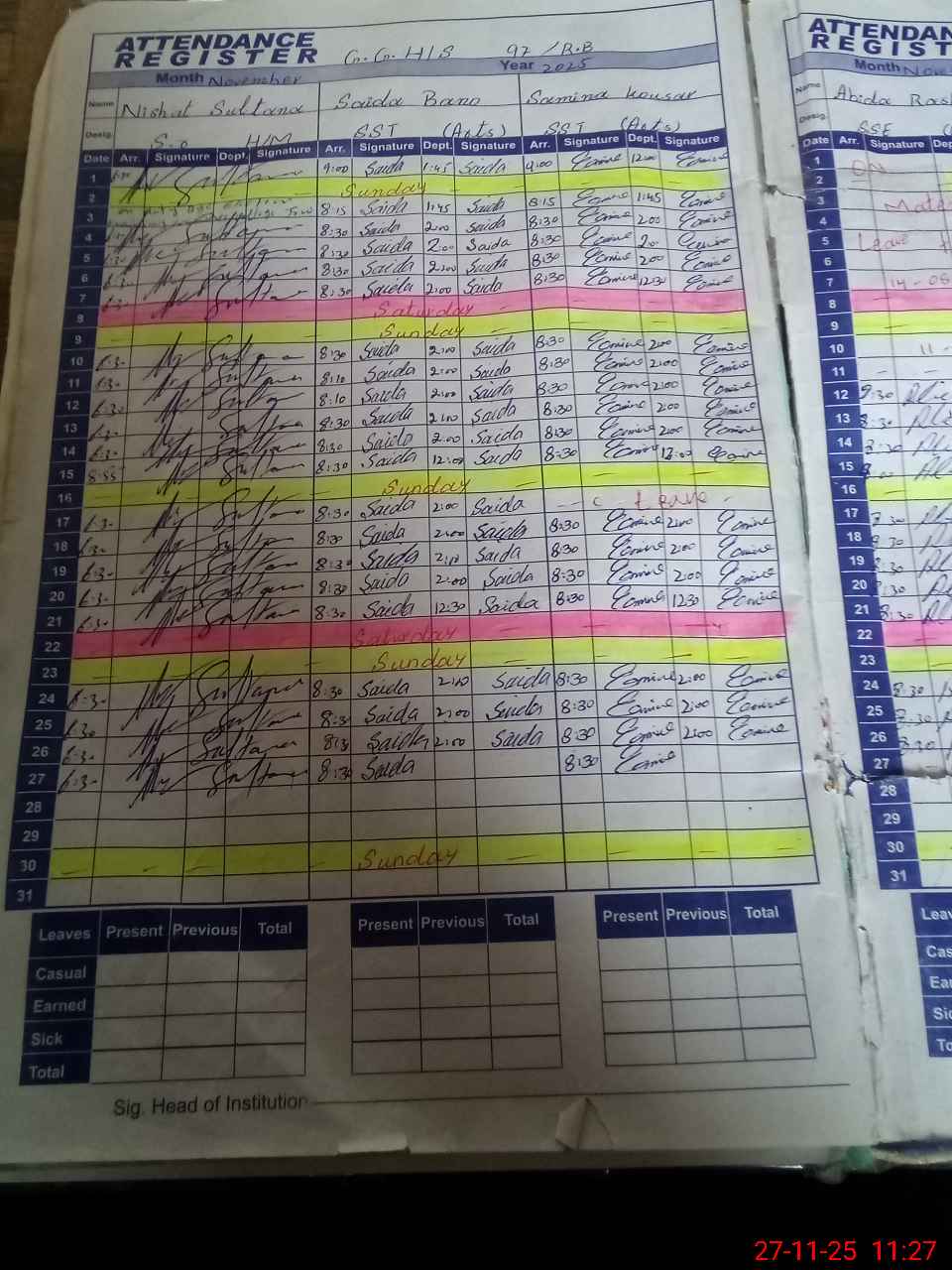 | 33**** | Na**** Na**** | Regular | 7 | 0 | 0 | 0 | 0 | 0 | 0 | 6 | 1 | Extraordinary Leave | |