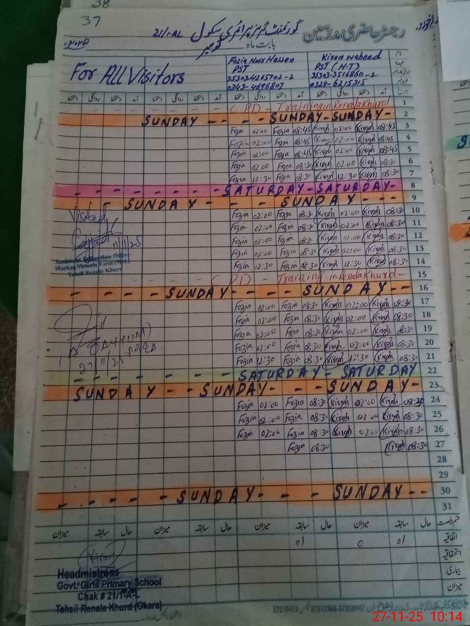 | Name: KI**** WA**** Designation: (School Headmaster's/Headmistress's) PST Phone/Cell Number: 03**** |