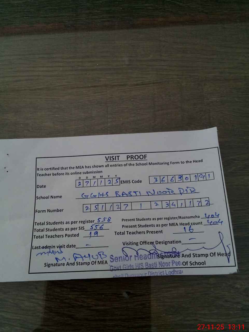 | EMIS Code: 36630191 | Name of School: GGHS BASTI NOOR PIR | |||
