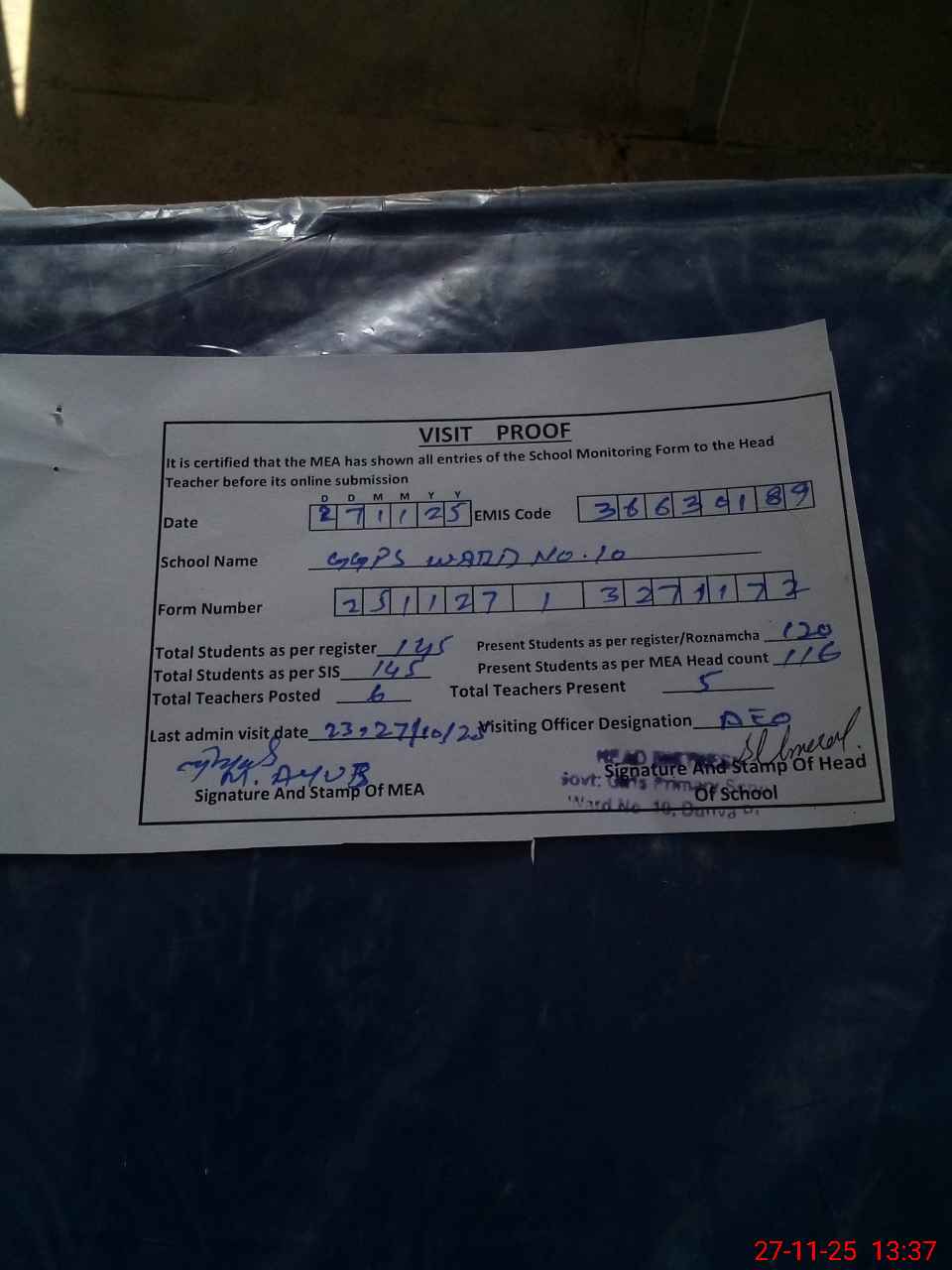 | EMIS Code: 36630189 | Name of School: GGPS WARD NO 10 | |||