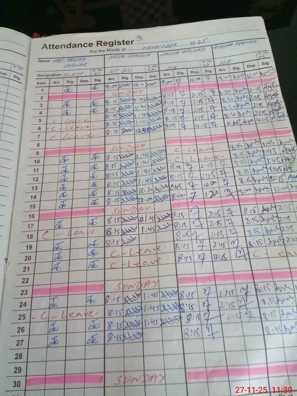 | CNIC | Full Name | Designation | R/C | Absence During Last Calender Month |