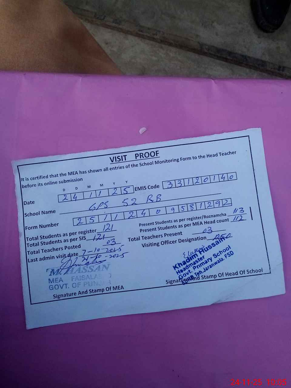 | Certified that this School was Inspected by the Undersigned MEA/DMO Today and the Information Stated Above is as Per Record. | |||||