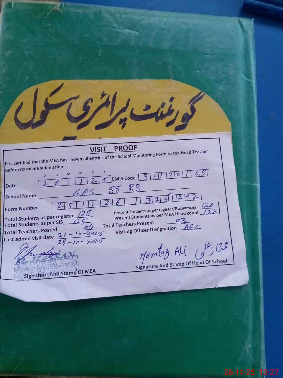 | EMIS Code: 33120145 | Name of School: GPS 55 RB | |||