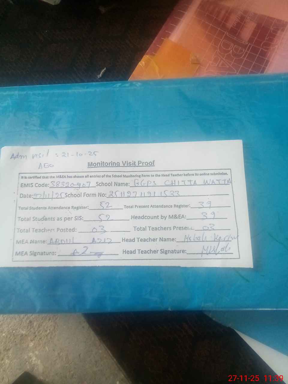 | EMIS Code: 38320907 | Name of School: GGPS CHITTA WATTA | |||