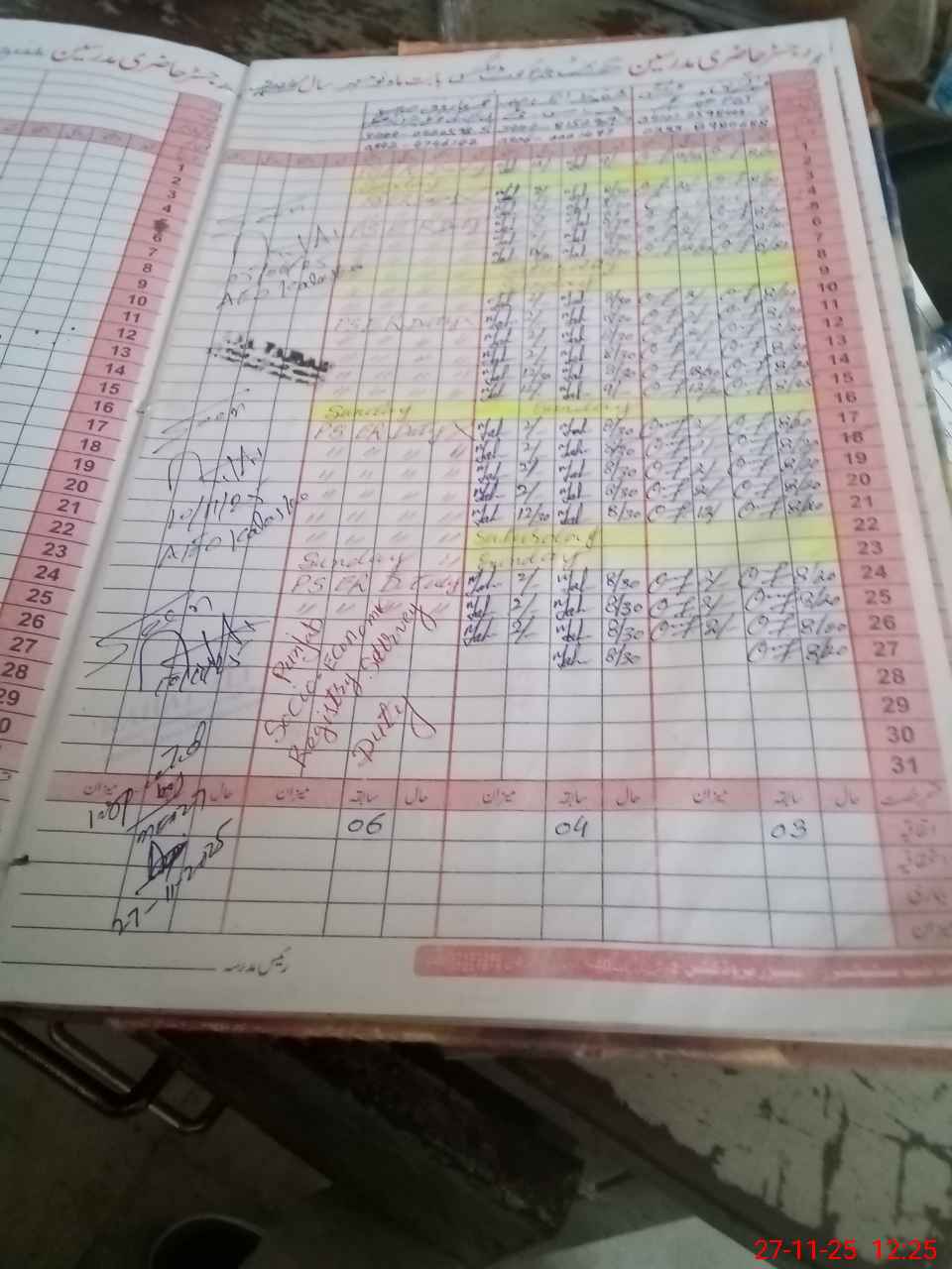 | CNIC | Full Name | Designation | R/C | Absence During Last Calender Month |