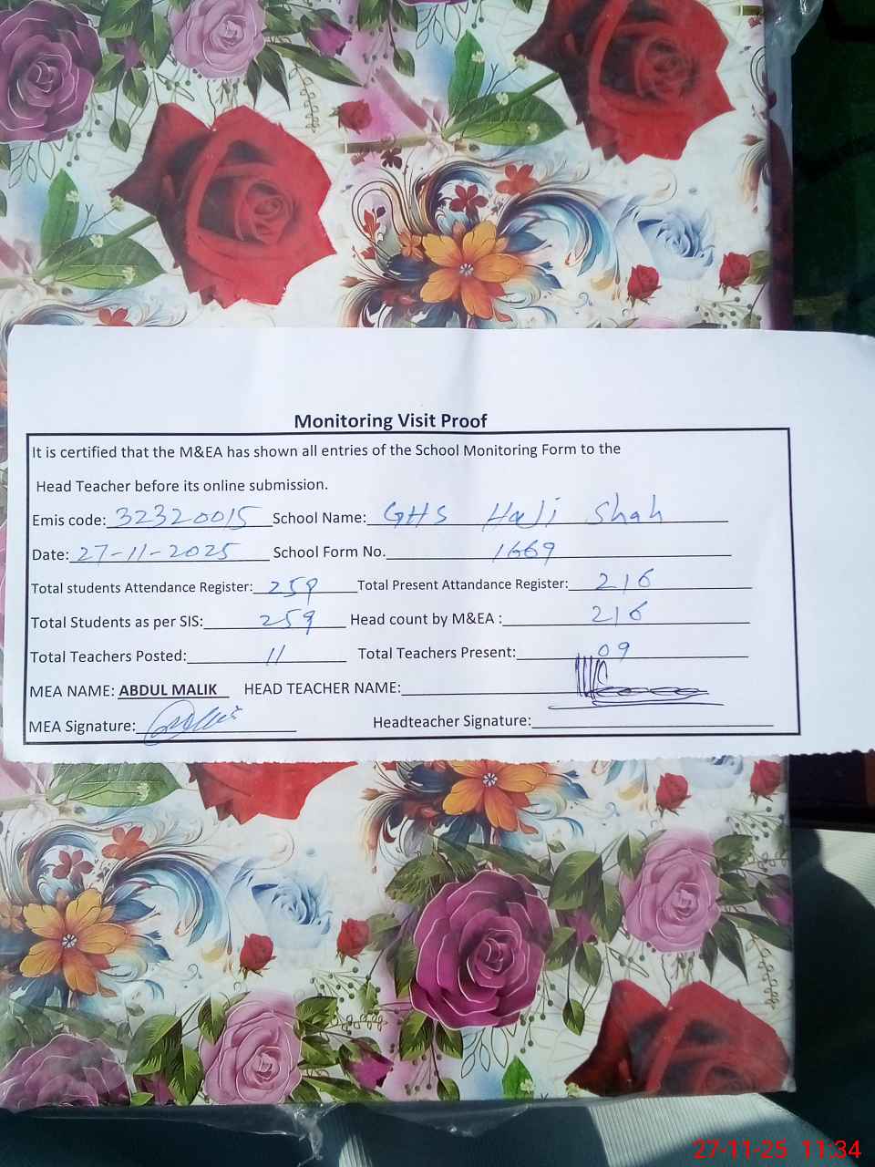 | EMIS Code: 32320015 | Name of School: GHS HAJI SHAH | |||