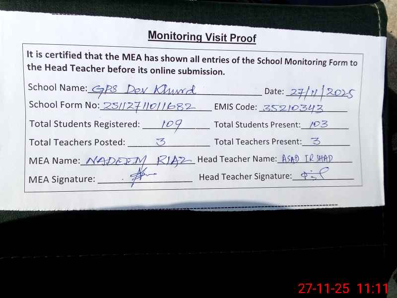 | EMIS Code: 35210343 | Name of School: GPS DEV KHURD TEHSIL MODE TOWN | |||