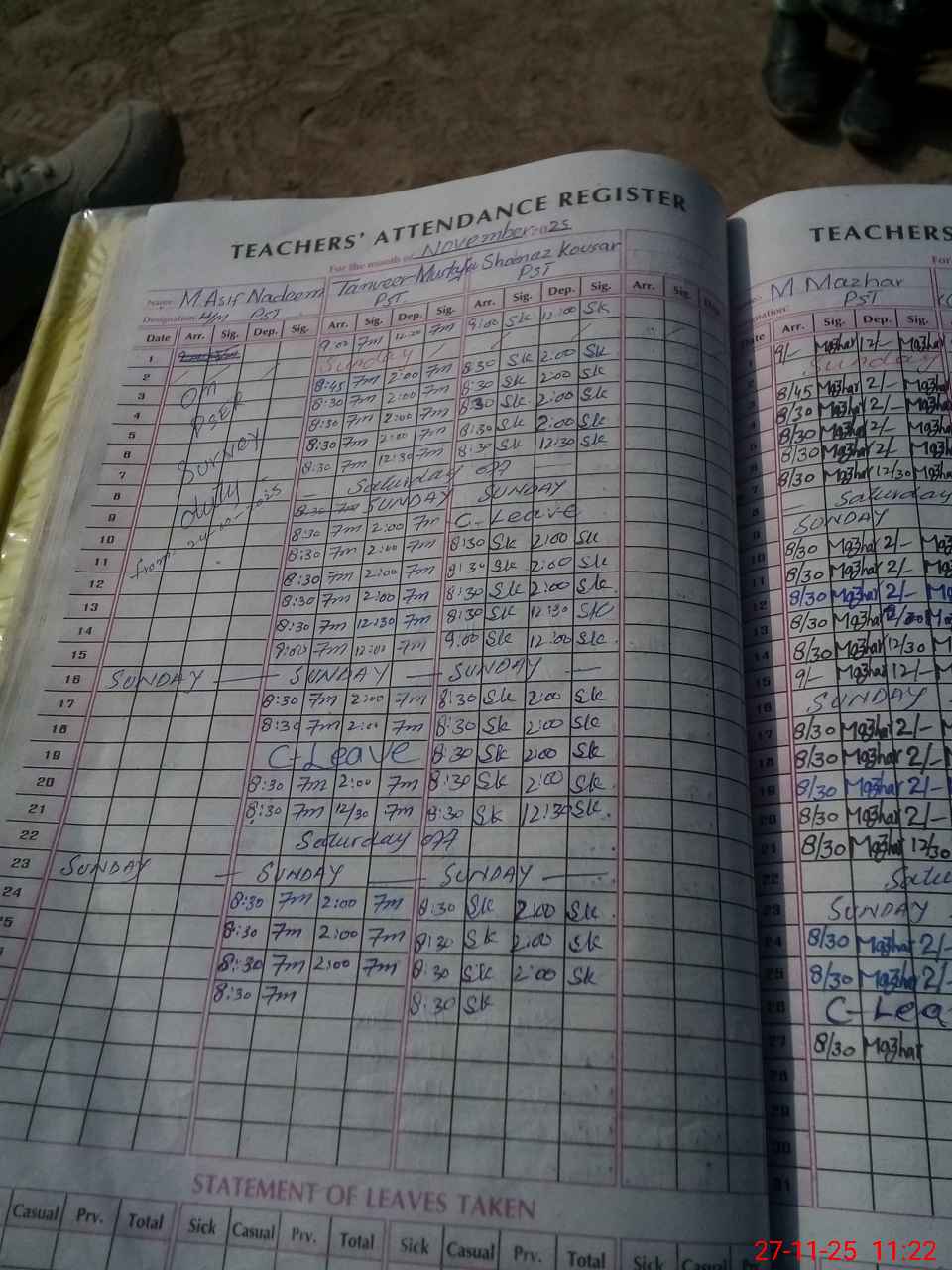 | Leave | Duty | Absent | Maternity | Medical | Ex- Pak |