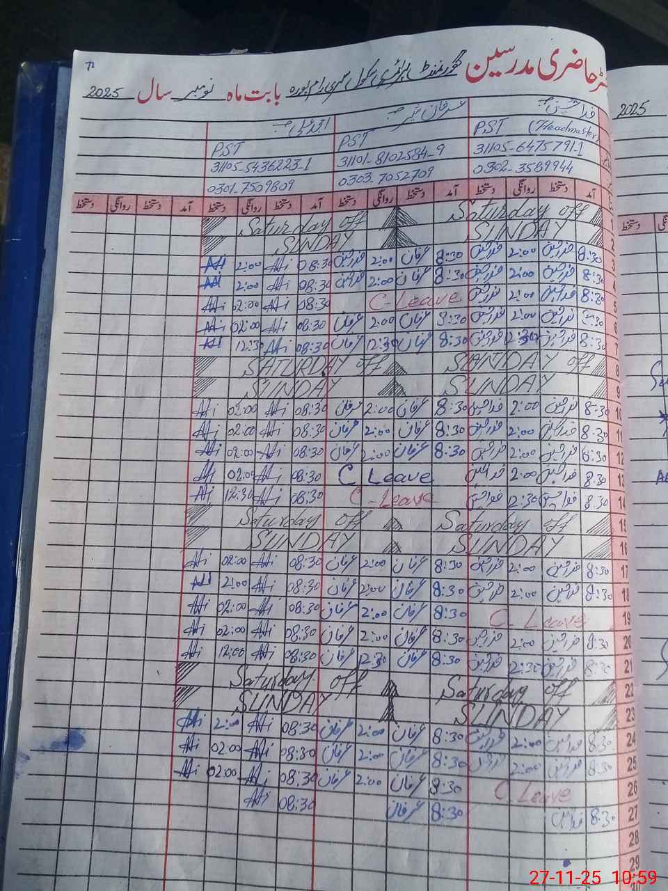 | Name: FI**** HU**** Designation: (School Headmaster's/Headmistress's) PST Phone/Cell Number: 03**** |