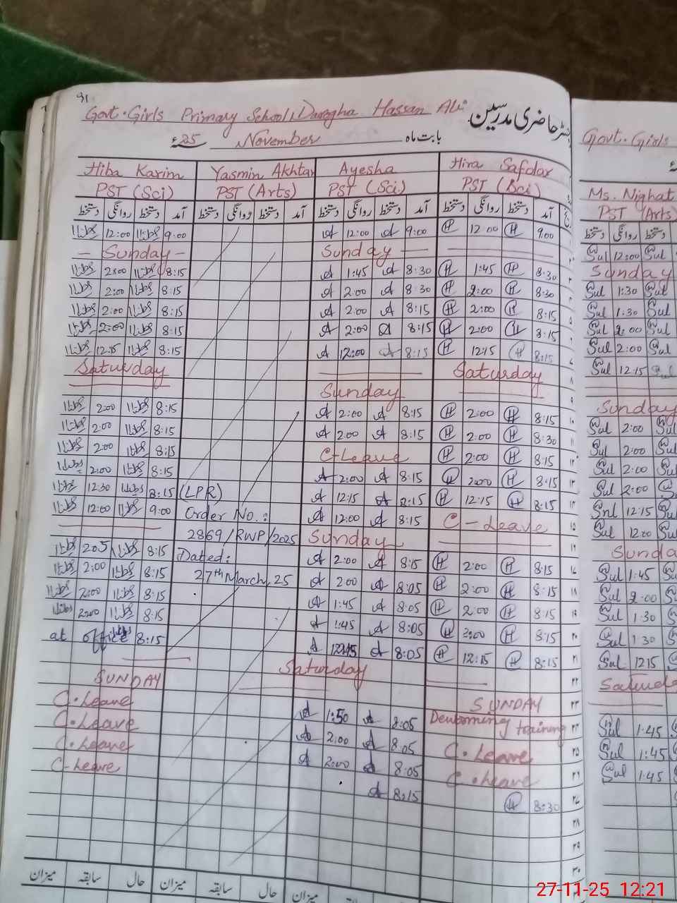 | Leave | Duty | Absent | Maternity | Medical | Ex- Pak |