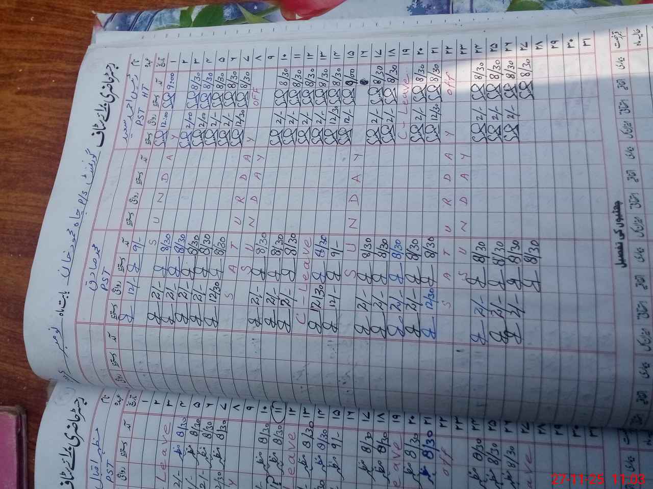 | Leave | Duty | Absent | Maternity | Medical | Ex- Pak |