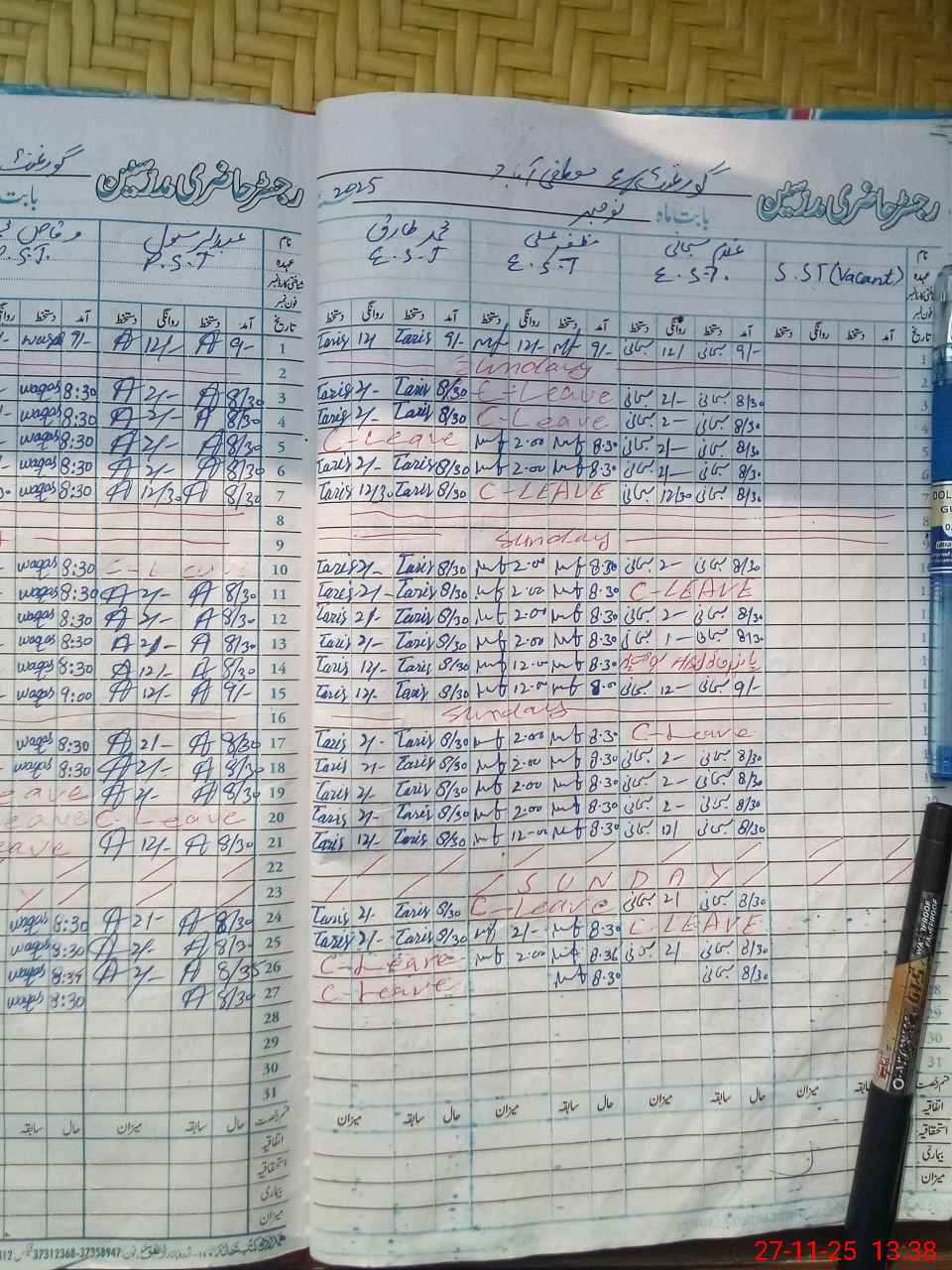 | CNIC | Full Name | Designation | R/C | Absence During Last Calender Month |