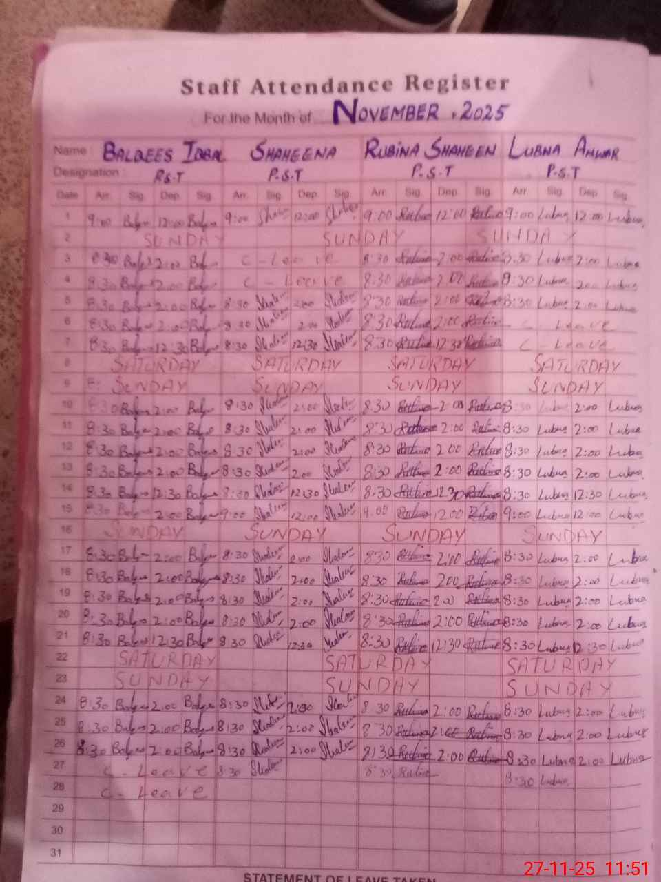 | Name: BA**** IQ**** Designation: (School Headmaster's/Headmistress's) Head Mistress Phone/Cell Number: 03**** |