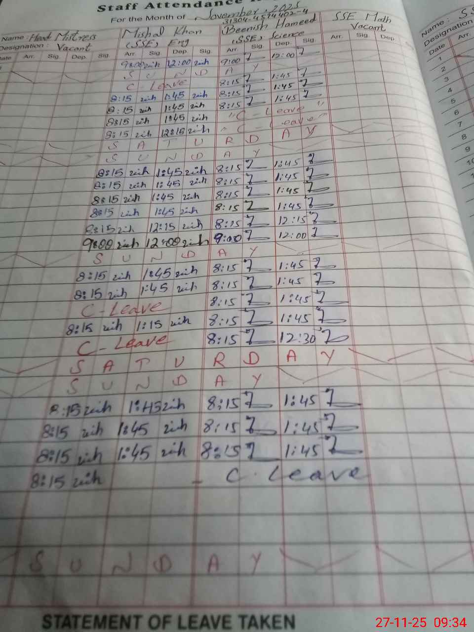 | 31**** | Be**** Ha**** | ESE Science | Contract | 0 | 0 | 0 | 0 | 0 | 0 | 0 | 0 | 0 | Casual |