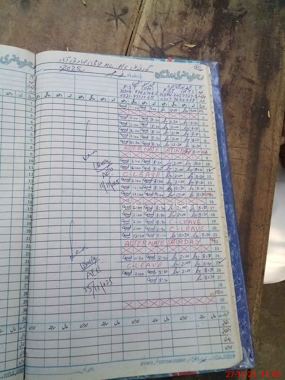 | CNIC | Full Name | Designation | R/C | Absence During Last Calender Month |