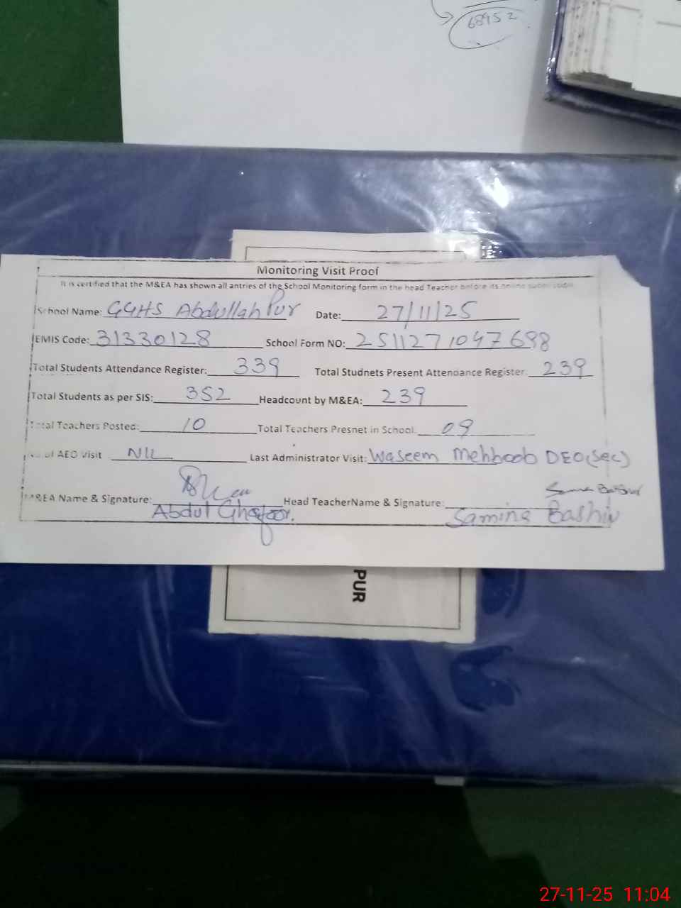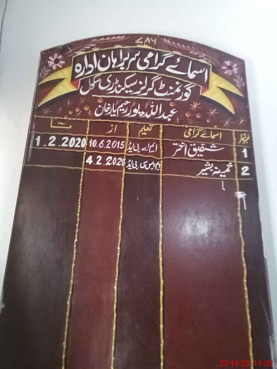 | EMIS Code: 31330128 | Name of School: GGHS ABDULLAH PUR | |||