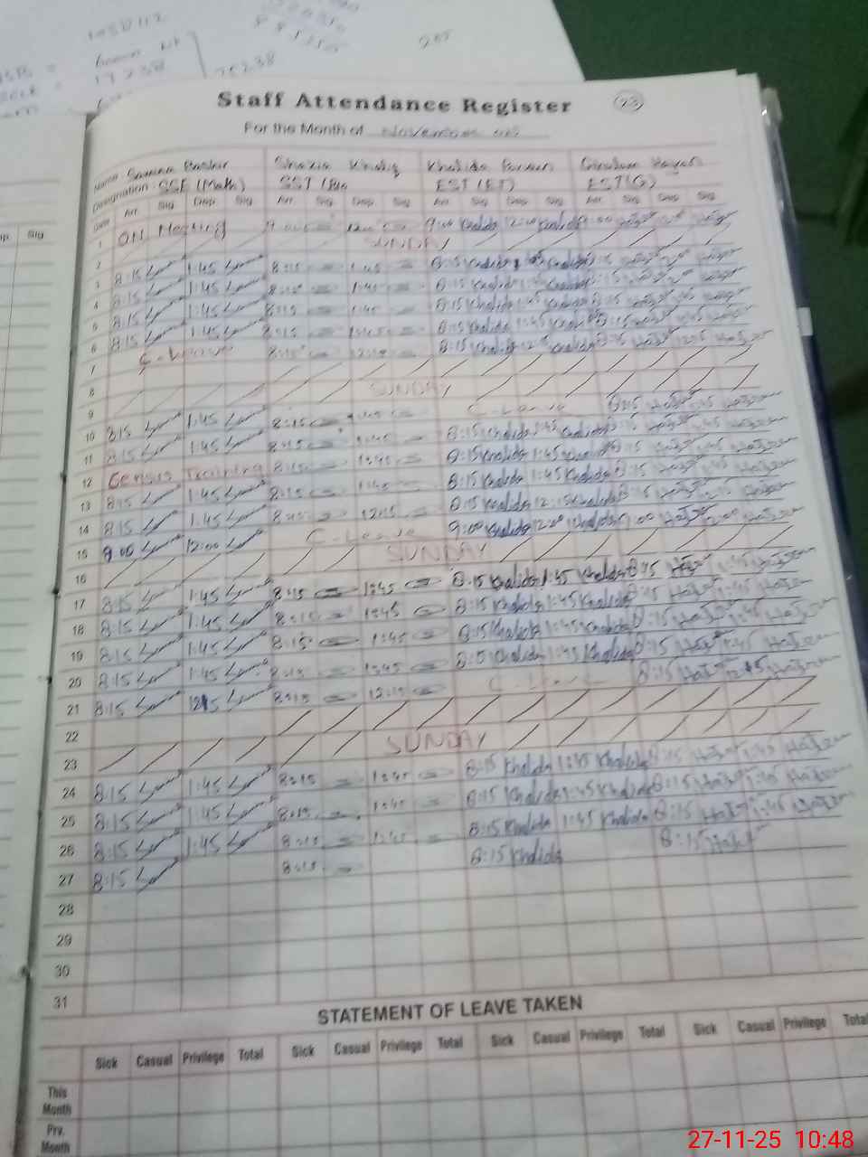 | 31**** | Ab**** Su**** | C4 | Regular | 0 | 0 | 0 | 0 | 0 | 0 | 0 | 0 | 0 | Absent (Un-Authorized) |