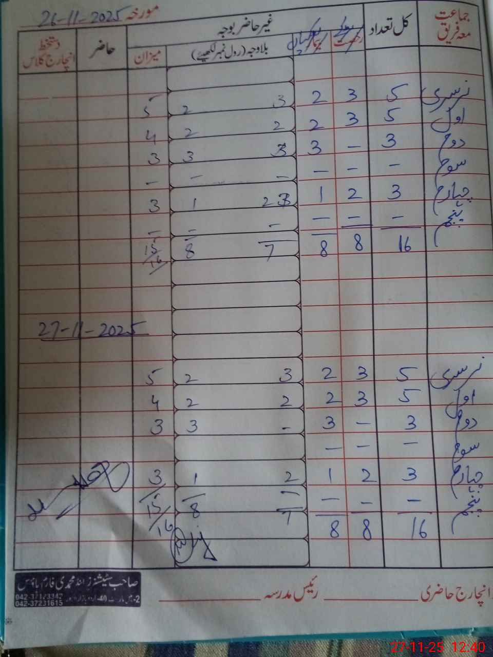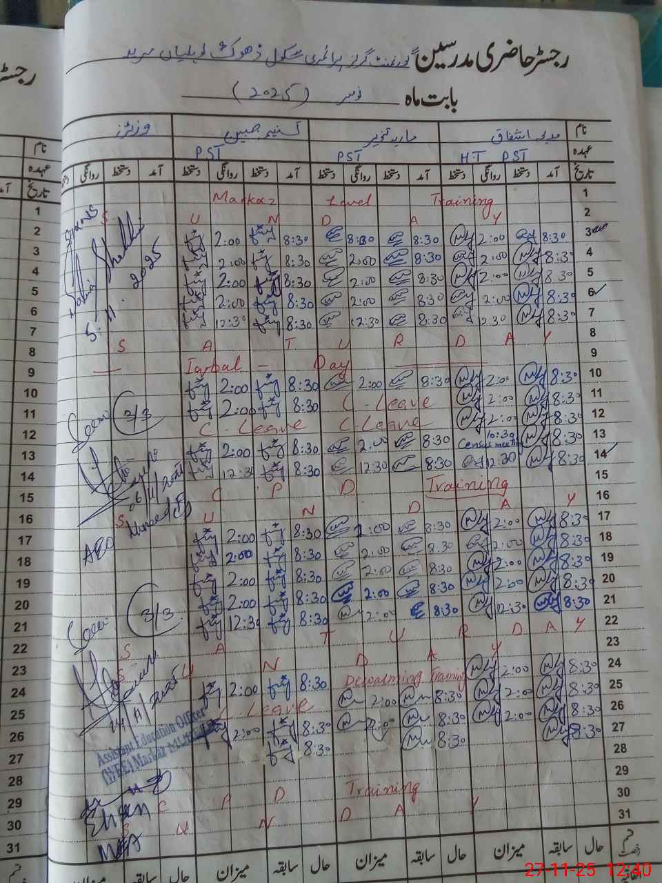 | CNIC | Full Name | Designation | R/C | Absence During Last Calender Month |