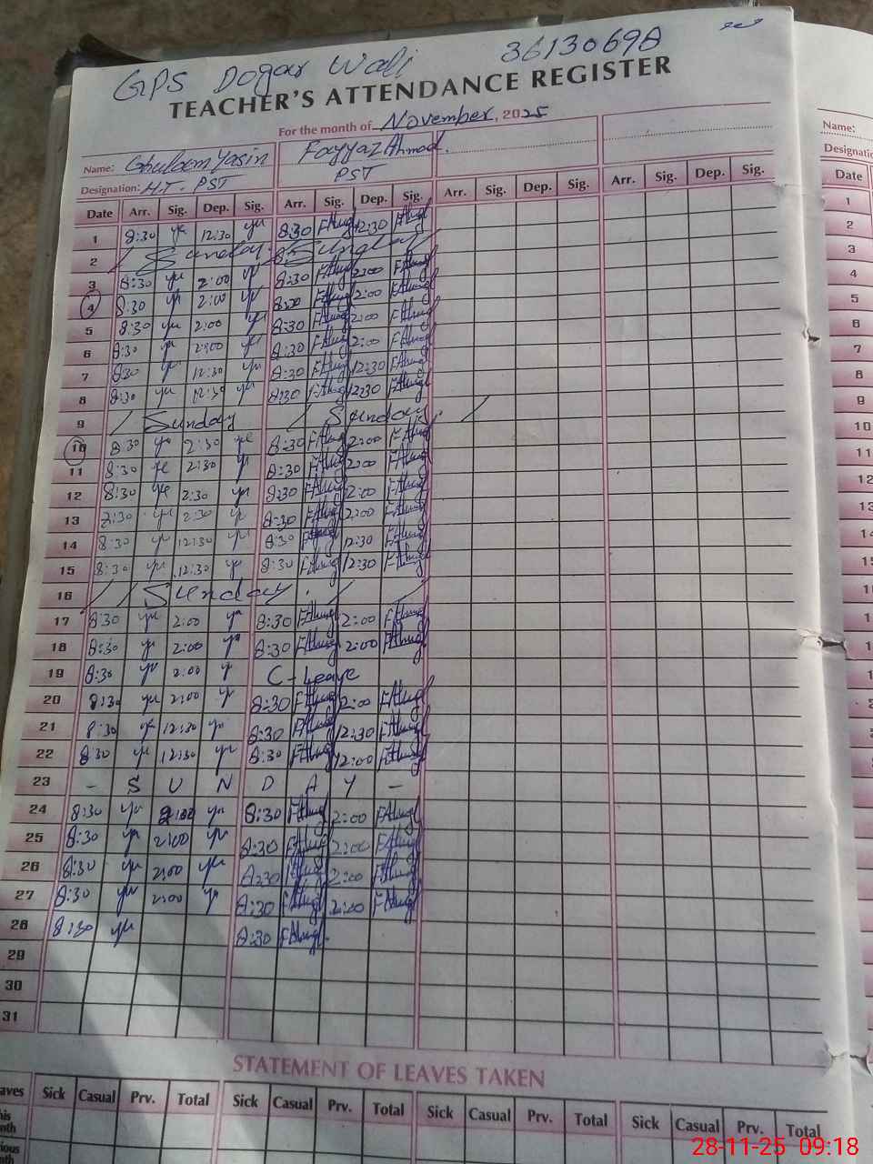 | Name: GH**** YA**** Designation: (School Headmaster's/Headmistress's) PST Phone/Cell Number: 03**** |
