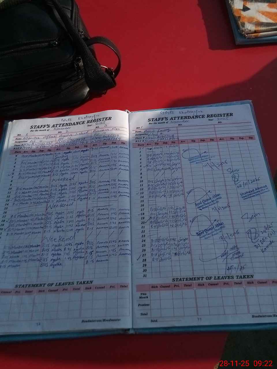| CNIC | Full Name | Designation | R/C | Absence During Last Calender Month |