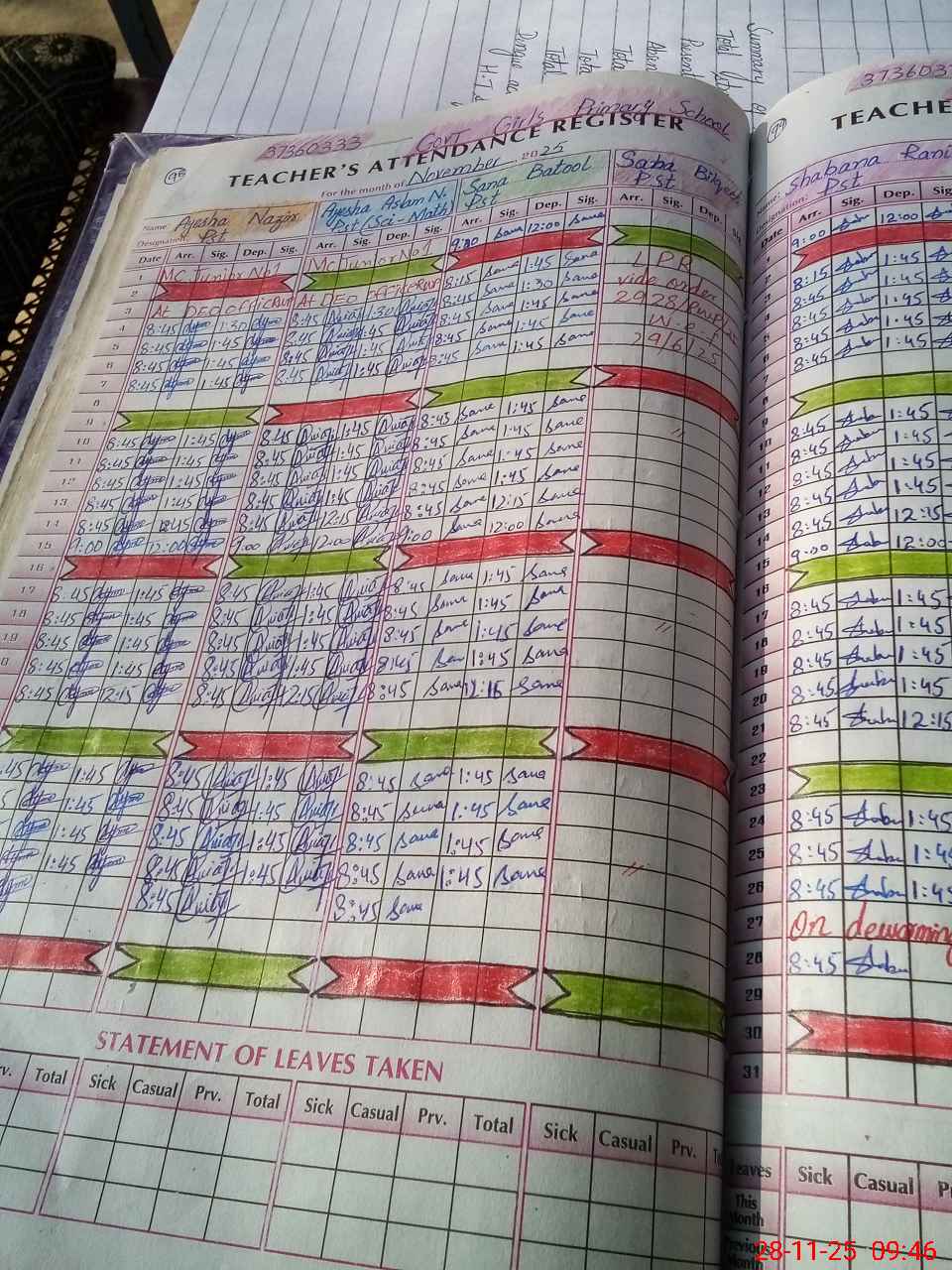 | Leave | Duty | Absent | Maternity | Medical | Ex- Pak |