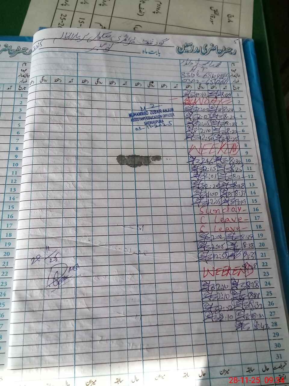 | CNIC | Full Name | Designation | R/C | Absence During Last Calender Month |